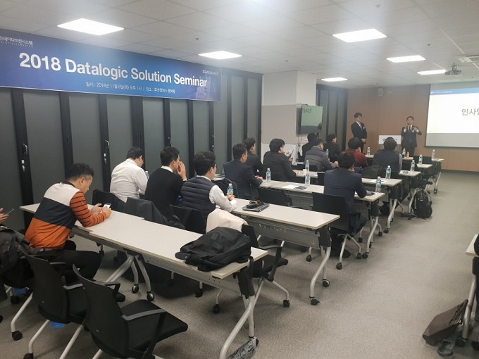 ▲ 데이터로직코리아는 8일 파트너사를 초청해 서울 구로 휴넷캠퍼스에서 2018 Datalogic Solution Seminar를 개최했다.