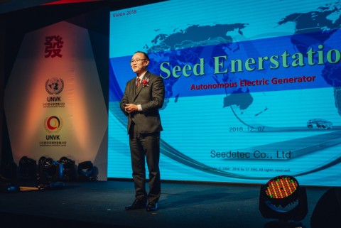 이번에 개발한 에너지 발전플랫폼 ‘시드에너스테이션(Seed Ener Station)’은 세계유수의 기업(I사, G사) 및 단체에서 천문학적 예산을 들여서도 개발하지 못한 마그네틱 자장 기반의 자가발전 개념을 국내기술로 실현시킨 제품 및 기술이다.