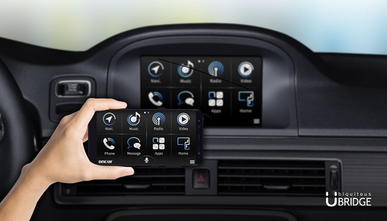 ‘oncar’는 유브릿지가 자체 개발한 스마트폰 미러링 엔진을 활용해 스마트폰 화면과 소리를 차량 내비게이션에 전달하고 내비게이션에서 스마트폰을 조작할 수 있는 커넥티드카 솔루션이다.
