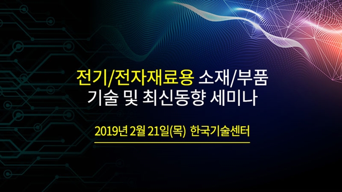 본 세미나에서는 전기전자재료용 고기능성 스마트 패키징 점접착 소재 기술 동향, 전기전자용 페놀, 에폭시 수지 연구 동향, 다기능성 나노탄소 전기전자 소재 기술 개발 현황 및 산업전망, 모바일기기용 고방열 소재/부품 기술동향, OLED 발광 재료 개발 동향 및 향후 전망, 고기능 전기전자용 실리콘 응용 기술 등 다양한 발표가 있을 예정이다.