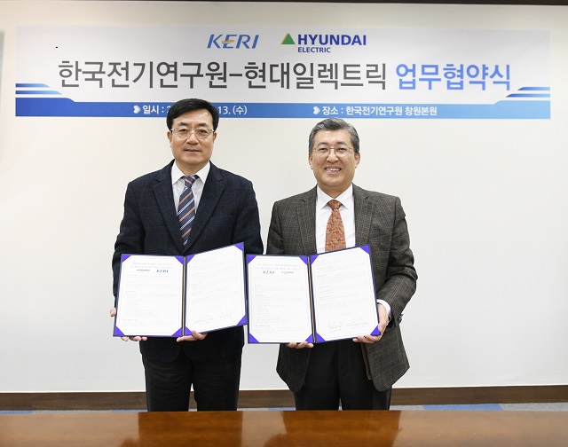 체결식은 한국전기연구원(이하 KERI) 최규하 원장과 현대일렉트릭 김성락 부사장 등이 참석한 가운데 13일(수) 오전 KERI 창원본원에서 열렸다.
