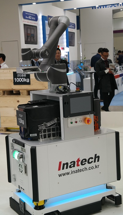 올해로 40주년을 맞이한 공장자동화 솔루션 기업 인아그룹의 자회사인 인아텍은 이번 전시회를 통해 자율주행 로봇 MiR, 비전(Vision)이 내장된 세계 최초의 협동로봇 TM Robot, 팔레트 운송 로봇 Nipper 등을 출품했다.