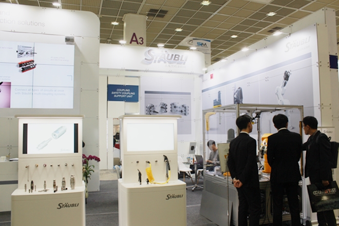 스토브리코리아는 이번 전시회에 로봇사업부뿐 아니라 유공압커넥터사업부, 전기커넥터사업부가 함께 참여해 커넥터, 커플링, 로봇 툴 체인저 등도 함께 전시했다.