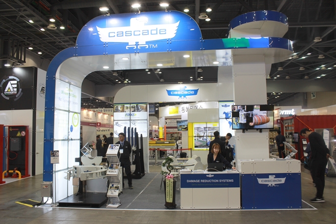 4차산업혁명의 최신기술이 반영된 물류산업의 미래를 가늠할 '국제물류산업대전 2019(KOREA MAT 2019)'가 지난 16일 일산 킨텍스에서 개최됐다. 캐스케이드는 초경량 페이퍼 롤 클램프, 멀티 로드 핸들러, 롤러 플래튼 등의 솔루션을 선보였다.