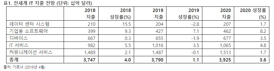 IT 자문기관 가트너(Gartner)가 2019년 전세계 IT 지출에 대한 최신 전망을 19일 발표했다.