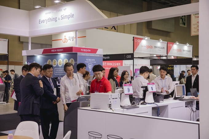 유통매장의 효율적인 정산을 위한 자동정산 키오스크를 현대백화점 전 매장에 공급하여 화제를 모았던 에이텍에이피는 이번 전시회에서 대형, 중형, 소형정산기와 SCO(셀프체크아웃), IoT 기술이 접목된 ESL(전자가격표시기)를 주력 제품으로 선보인다. ESL은 이마트 등 대형 매장에서 업무효율 및 매장이미지 개선을 위해 도입하고 있으나, 정산기와 SCO는 소형 매장에서도 관심이 높다.