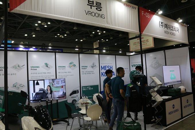 메쉬코리아는 케이샵(K SHOP) 2019에서 통합 물류 서비스 브랜드 ‘VROONG’를 선보였다. 회사 관계자는 “부릉의 통합 물류 서비스를 통해, 기업은 라스트 마일 물류 배송을 통해 사업 확장의 기회를, 고객은 언제 어디서든 양질의 초고속 물품 배송 서비스를 합리적인 금액으로 경험할 수 있다”고 설명했다.