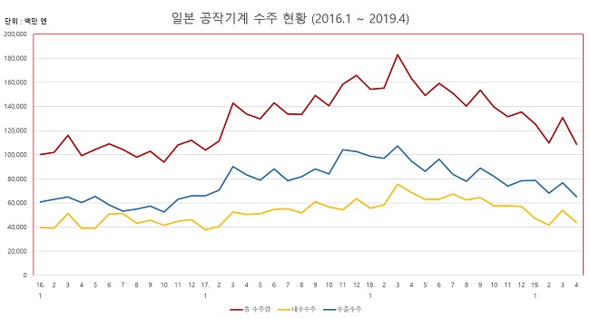 ▼ 2019년 4월 일본 공작기계 수주 현황