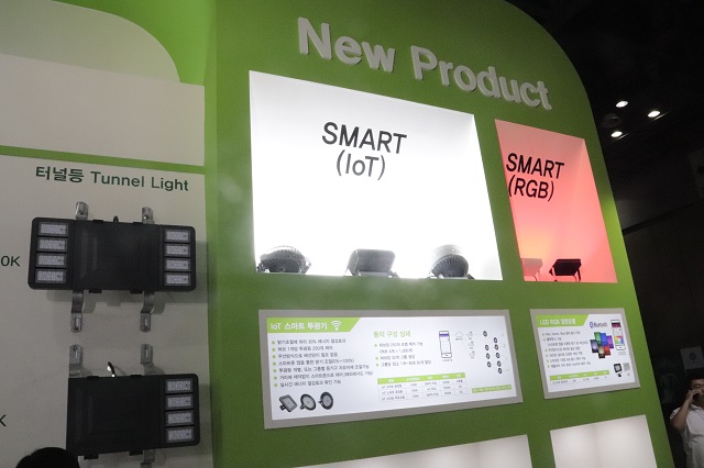 ▲ 지오라이팅은 다양한 곳에서 활용할 수 있는 RGV 스마트 투광등도 함께 전시헀다. <사진 : 김동원 기자>