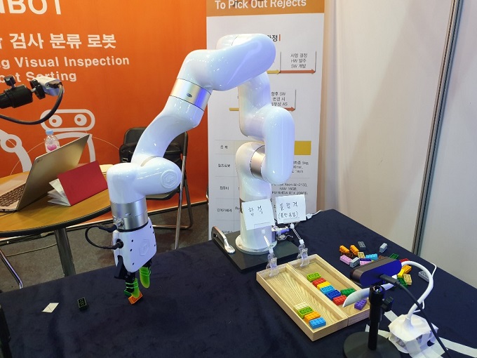 아인봇은 육안 검사 분류 작업에 로봇을 적용한 모델인 딥러닝 결함 검사 분류 로봇 '아인봇'을 소개했다.