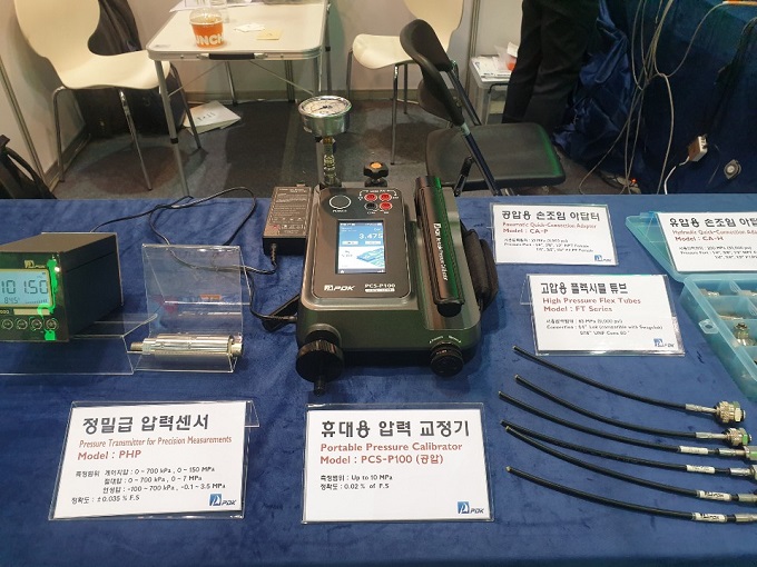 압력 교정기 전문기업인 피디케이는 PSR 압력/힘 센서와 PCS-100 공압 교정기를 전시했다.