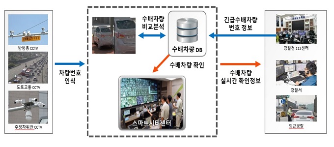개인정보보호법에서 허용하는 살인, 강도, 납치 등 강력범죄의 예방․진압 및 수사 등 목적으로 긴급 수배된 차량에 한해서만 경찰청이 차량번호를 제공하면 스마트시티 센터가 해당 차량의 위치정보를 회신한다.
