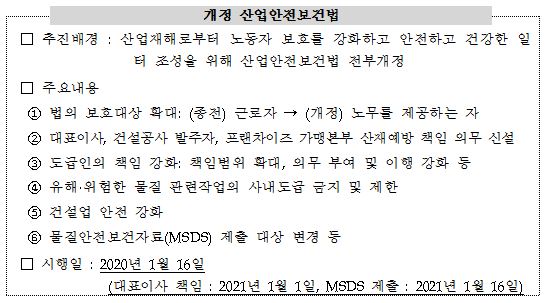 2021년 1월 16일부터는 물질안전보건자료(MSDS) 관련 개정 사항도 시행된다.