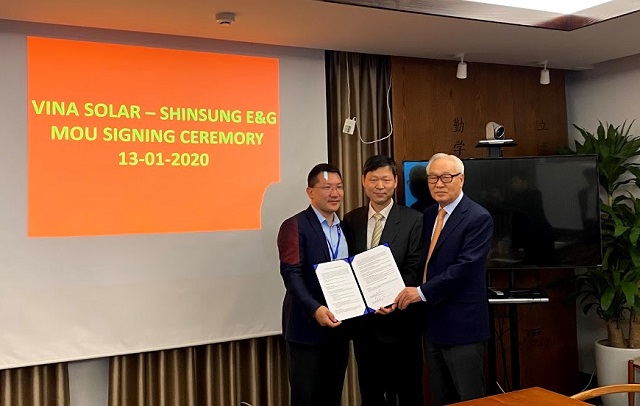 ▲ 신성이엔지가 베트남 태양광 제조기업 비나솔라(Vina Solar)와 해외 태양광 시장 공략을 함께 협력한다는 업무협약을 체결했다. <사진 : 신성이엔지>