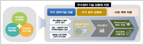 이를 극복하기 위해 산‧학‧연 협력을 통한 연구장비 핵심 기술 및 제품 개발을 추진하고, 개발된 장비에 대해 성능검증과 사업화 까지 지원함으로써 연구장비 전문기업의 경쟁력을 강화할 계획이다.