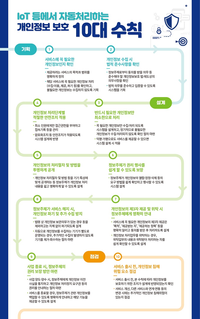 또한 가이드라인에서는 사업자가 준수해야 할 ‘IoT 등에서 자동처리 하는 개인정보 보호 10대 수칙’을 제안했다.