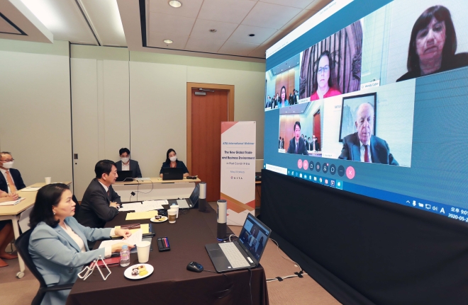 유명희 산업통상자원부 통상교섭본부장은 지난 27일(수) 삼성동 코엑스 회의실에서 '포스트 코로나 다자 통상질서 화상 국제 컨퍼런스'에 참석했다.