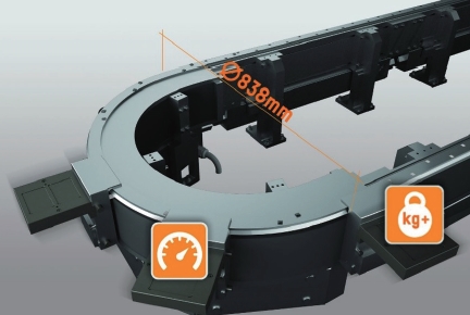 ▲ SuperTrak의 838mm에 달하는 폭 넓은 곡선 세그먼트는 특히 대형 조립체가