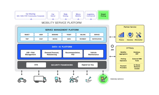 또한, 모빌리티 관련 다양한 부가서비스(보험 할인, 전기차 충전, 세차, 발렛, 정비 등)와 유연하게 연동할 수 있도록 설계되어 더욱 만족도 높은 서비스가 가능하다.