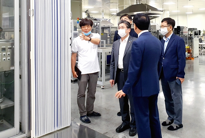 ▲정승일 산업부 차관이 지난 3일(금) 비나텍을 방문해 소재·부품·장비산업 1주년 현황을 점검하고 있다. (사진 : 산업부)