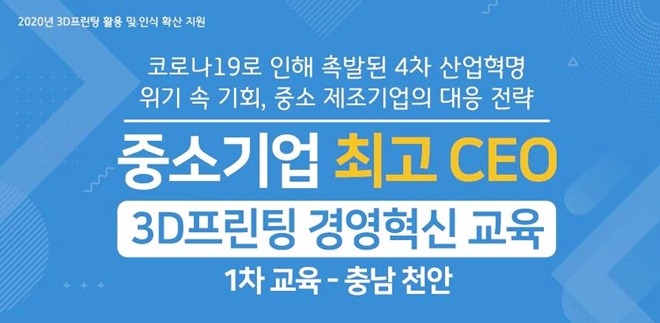 정보통신산업진흥원(이하 진흥원)이 추진 중인 ‘3D프린팅 활용 및 인식 확산 지원사업’의 일환으로 ‘중소기업 최고 CEO 3D프린팅 경영혁신 교육’이 오는 14일(화) 오전 9시부터 천안 오엔시티호텔에서 개최된다.