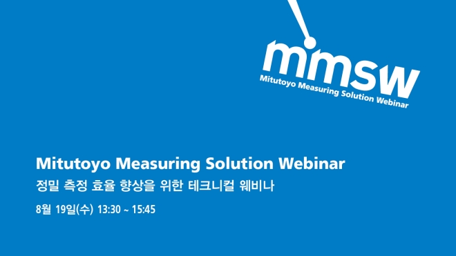 한국미쓰도요가 오는 8월 19일(수) 정밀 측정 효율 향상을 위한 테크니컬 웨비나(mmsw : Mitutoyo Measuring Solution Webinar)를 개최한다.