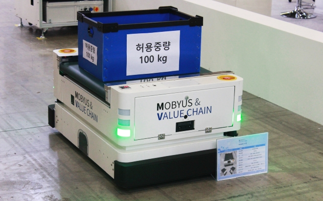 ▲모비어스밸류체인이 개발한 AGV(사진 : 서재창 기자)