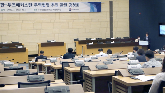 산업통상자원부(이하 산업부)는 우즈베키스탄과의 무역협정 협상 추진 관련 對국민의견수렴을 위한 공청회를 지난 7월 31일(금) 중구 대한상공회의소 의원회의실에서 개최했다.