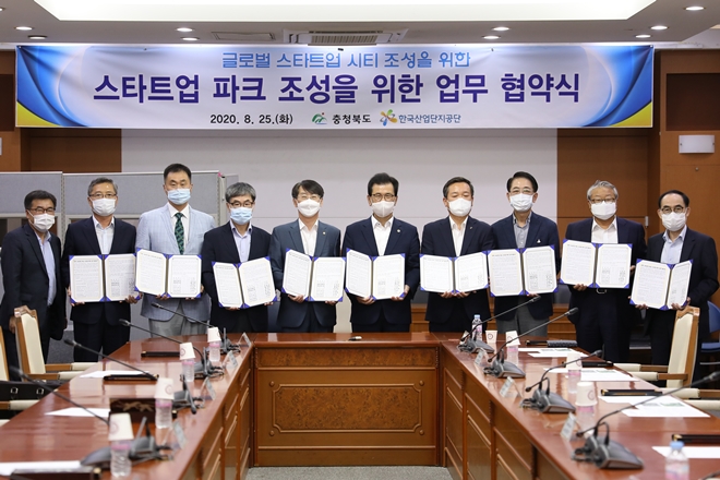 협약 기관은 충북 스타트업 파크 조성과 국내 창업 생태계 모델 창출을 위해 보유한 자원과 역량을 적극 활용하고 상호 협력하기로 약속했다.