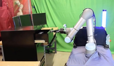 ▲ 구석구석 방역하기 위해 ADAMMS-UV에 설치된 UR5가 서랍을 열고 있다