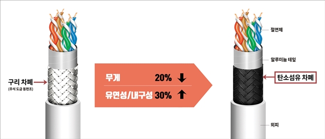 정부가 전략 육성하는 차세대 소재인 탄소섬유를 케이블을 보호하는 차폐 소재로 채택한 것이다. 그동안은 차폐 소재로 구리나 알루미늄을 사용해왔다.