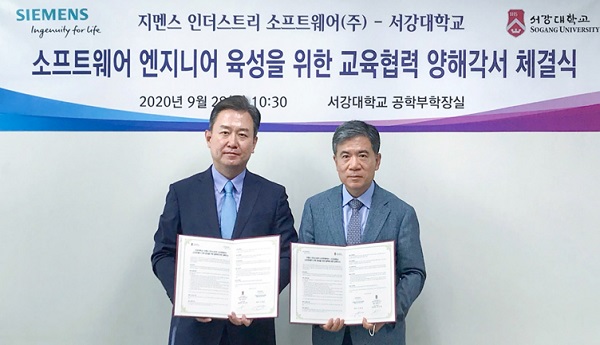 지멘스 디지털 인더스트리 소프트웨어는 서강대학교와 엔지니어링 소프트웨어 교육을 위한 MOU를 맺고, 스마트 제조 분야의 소프트웨어 전문 인력 양성을 위해 협력한다고 밝혔다.