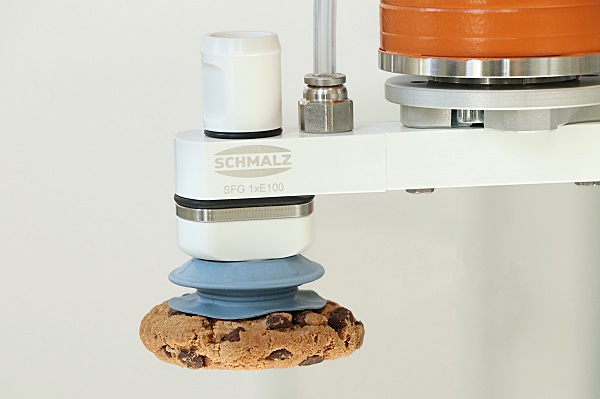 슈말츠는 건조식품용 모듈식 시스템의 콤팩트 그리퍼 ‘SFG’를 개발했다. 이 제품의 석션 패드는 FDA 승인된 실리콘으로 제조되므로 식품과 직접 접촉해도 안전하다.