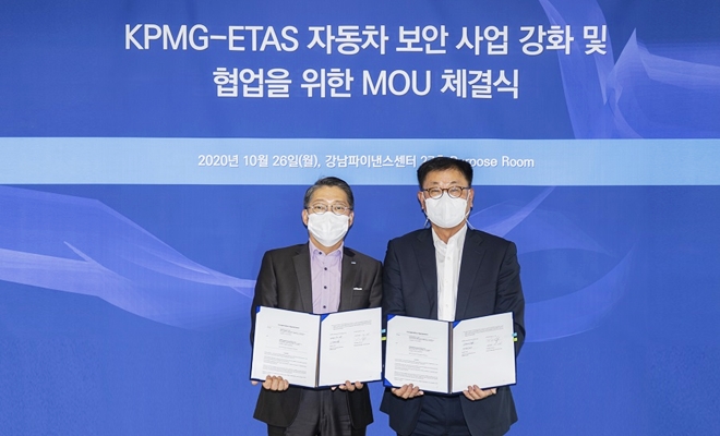 이타스코리아와 삼정KPMG는 지난 10월 26일(월) 삼정KPMG 회의실에서 자동차 보안 사업 강화 및 협업을 위한 업무 협약을 체결했다.