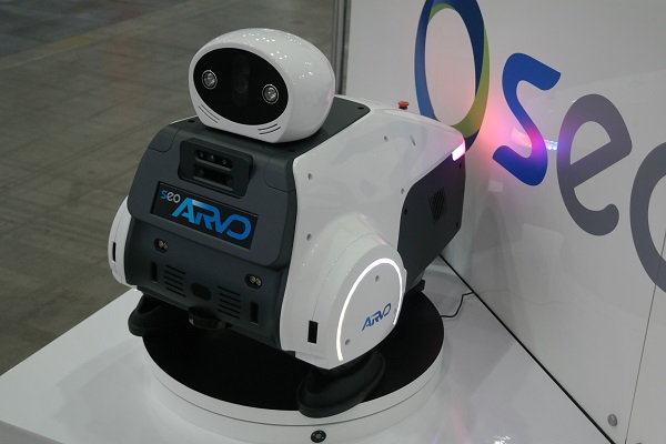 보안 감시 카메라 전문업체인 세오가 ‘2020 로보월드’에 참가해 이동형 방범·보안로봇 ‘아르보’를 선보였다.
