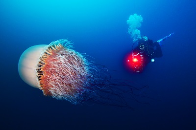 허만돈 작가의 ‘해파리와 다이버’는 올해 8월 강원도 강릉에서 촬영한 작품으로, 대형 해파리와 그 뒤를 쫓는 다이버가 바닷속 콤비를 이루는 모습을 담았다.