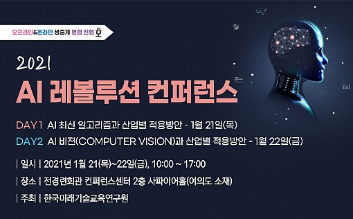 한국미래기술교육연구원이 '2021 AI 레볼루션 컨퍼런스'를 서울 여의도 전경련회관 사파이어홀에서 내년 1월 21일, 22일 양일 간 개최한다.