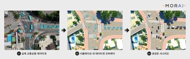 모라이는 자체 개발한 기술로 실제 교통상황 데이터셋을 활용해 테스트 시나리오를 자동 생성하고, 이 시나리오를 랜덤화해 수만 가지의 시나리오를 자동으로 생성한다. 이 솔루션은 사고 상황, 악천후 등 엣지 케이스를 추가 발견하는 것도 가능하다.