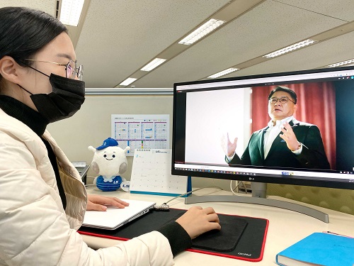 사진은 경기도 안양 본사에서 LS일렉트릭 직원이 비대면으로 진행된 ‘디지털 비전 선포식’을 경청하고 있는 모습