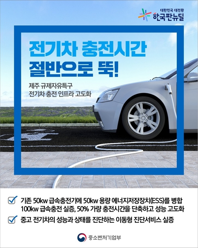 중소벤처기업부(이하 중기부)와 제주특별자치도는 ’제주 전기차 충전서비스 특구‘의 전기차 충전인프라 고도화와 전기차 성능·상태 진단서비스의 사전준비가 순조롭게 진행됨에 따라 21일 본격적인 실증착수에 들어갔다고 밝혔다.
