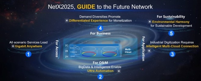 그는 미래형 타깃 네트워크는 ▲기가비트 애니웨어(Gigabit Anywhere) ▲초자동화(Ultra-Automation) ▲지능형 멀티클라우드 연결(Intelligent Multi-Cloud Connection) ▲차별화된 경험(Differentiated Experience) ▲환경 조화(Environment Harmony) 등 5가지 기능을 갖춰야 한다고 설명했다.