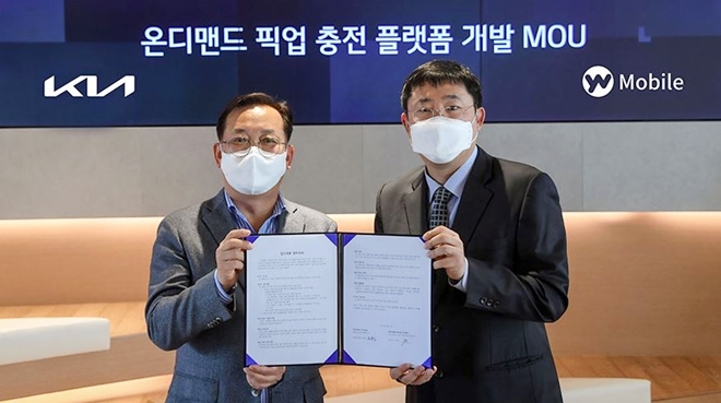 기아와 YW모바일은 지난 16일(화) 기아 압구정 사옥 BEAT360)에서 기아 판촉전략실장 오용진 상무, YW모바일 이영석 대표이사 등 주요 관계자들이 참석한 가운데 온디맨드 픽업 충전 플랫폼 공동 개발을 위한 업무협약(MOU)을 체결했다고 밝혔다.