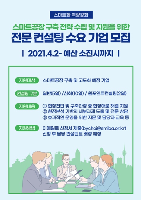 협회 관계자는 "스마트공장 구축 및 운영을 위한 전략 컨설팅을 통해 성공적인 스마트공장 구축 및 경쟁력 향상을 돕겠다. 나아가 기업의 제조혁신으로 이어지기를 기대한다"고 말했다.