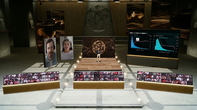 아이튜버 스튜디오에 도입된 ‘실시간 참여형 가상공간’은 ‘XR 웨비나’를 진행하는 발표자와 참여자들의 실시간 소통을 지원하는 시스템이다. 이번 확장을 통해 발표자와 키노트, 수십 명의 관객들을 하나의 가상 공간에 구현할 수 있게 됐다.