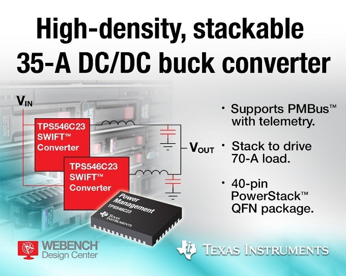 TI는 높은 밀도의 18V 입력, 35A 동기식 DC/DC 벅 컨버터 제품을 출시했다. 신제품 TPS546C23 전원 컨버터는 완전 차동 원격 전압 감지 기능과 PMBus를 지원하여 텔레메트리가 가능하다. 또한 이 컨버터는 소형 풋프린트 패키지에 하이사이드 및 로우사이드 MOSFET을 통합함으로써 경쟁 제품보다 훨씬 더 우수한 밀도를 제공한다.