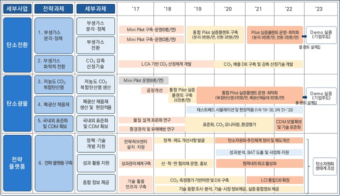 정부는 마련된 로드맵에 따라 내년 초에 범부처 단일 사업단을 발족하고, 향후 6년간 총 475억 원을 투자해 탄소자원화 기술의 실증을 본격 추진할 계획이다.