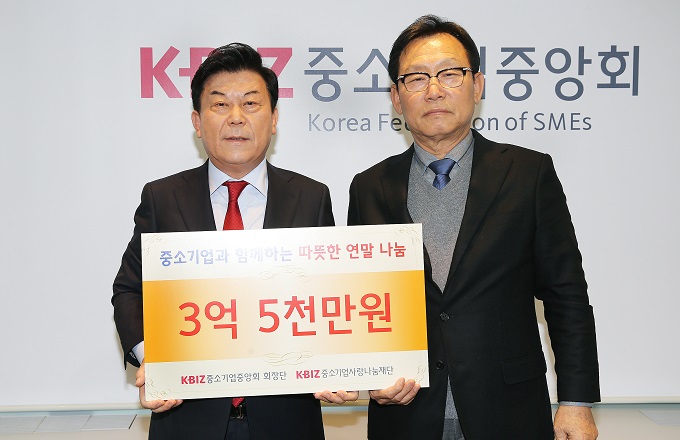중소기업사랑나눔재단은 12월 15일 중소기업중앙회 회장단이 모금한 성금 3억5천만원을 재단에 전달했다고 밝혔다.