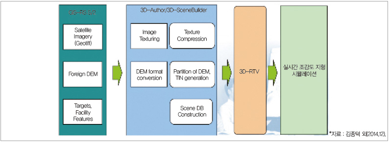 시각화가 완료된 3D 지도데이터를 이용하여 3D-GIS 시스템을 효과적으로 구축하기 위해서는 구름/안개/해수면/광원 등에 대한 비쥬얼 이펙트 기능, 3D-Author 및 3D-Scene Builder 기능, 3차원 좌표를 사용한 사용자 인터페이스 기능(키보드, 마우스, 조이스틱 등), 촬영된 개체의 속성정보를 한글 및 영문으로 3차원 화면상에 표시하는 개체 속성정보 표현기술 등 데이터 전처리를 위한 기술이 필요하다.