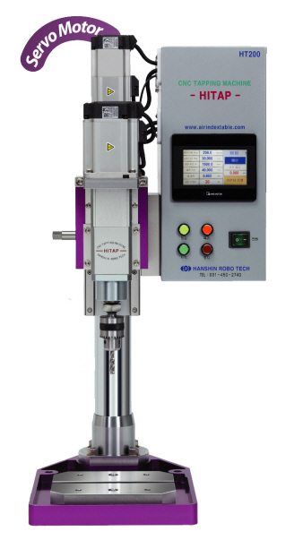 한신로보테크의 CNC 탭핑 머신은 서보 모터 볼스크류에 의해 빠르고 정확한 탭핑 작업 및 드릴링 작업이 가능하다. 이 제품은 터치스크린 방식으로 조작이 간편하고 탭 피치 기어를 교환할 필요가 없다. 또한 마이크로 소형 탭 작업에 적합하며 드릴 탭 공구(특수공구)가 장착되어 드릴과 탭 작업이 한 번에 이루어진다. 그뿐 아니라 LM 볼 스크류 구동으로 수명이 길고 급속 이송 기능으로 생산 시간이 단축되며 콤팩트하고 가벼워 전용기 자동화에 최적이다. 이 제품은 과부하 방지 기능, 자동 클램핑 기능 등도 갖추고 있다.