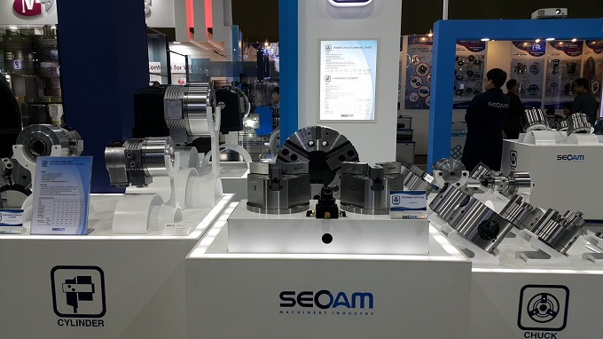 SIMTOS 2018에서 선보인 SEOAM의 전자 척(Electro Magnetic Chuck)은 강력한 클램핑력으로 안전하고 정밀한 가공이 가능하다. 1∼8단계까지 자력 세기 조절이 가능하며 전자기력으로 클램핑하므로 가공 소재에 손상을 최소화한다. 그리고 잔류 자력이 거의 남지 않으므로 가공 소재 분리 및 칩 제거가 용이하다.